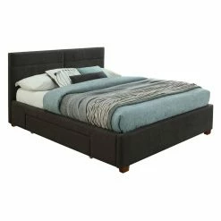 A versatile addition to any bedroom, the Worldwide Home Furnishings Upholstered Platform Bed with Storage provides storage with style. Solid rubberwood legs with an oak finish support the frame with 2 built-in storage drawers with caster wheels, one on each side. Soft fabric upholstery features stitched tufting for visual appeal while the platform slats mean you don’t need a box spring to support your mattress. Choose the size and color that best suits your bedroom.