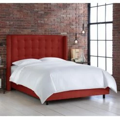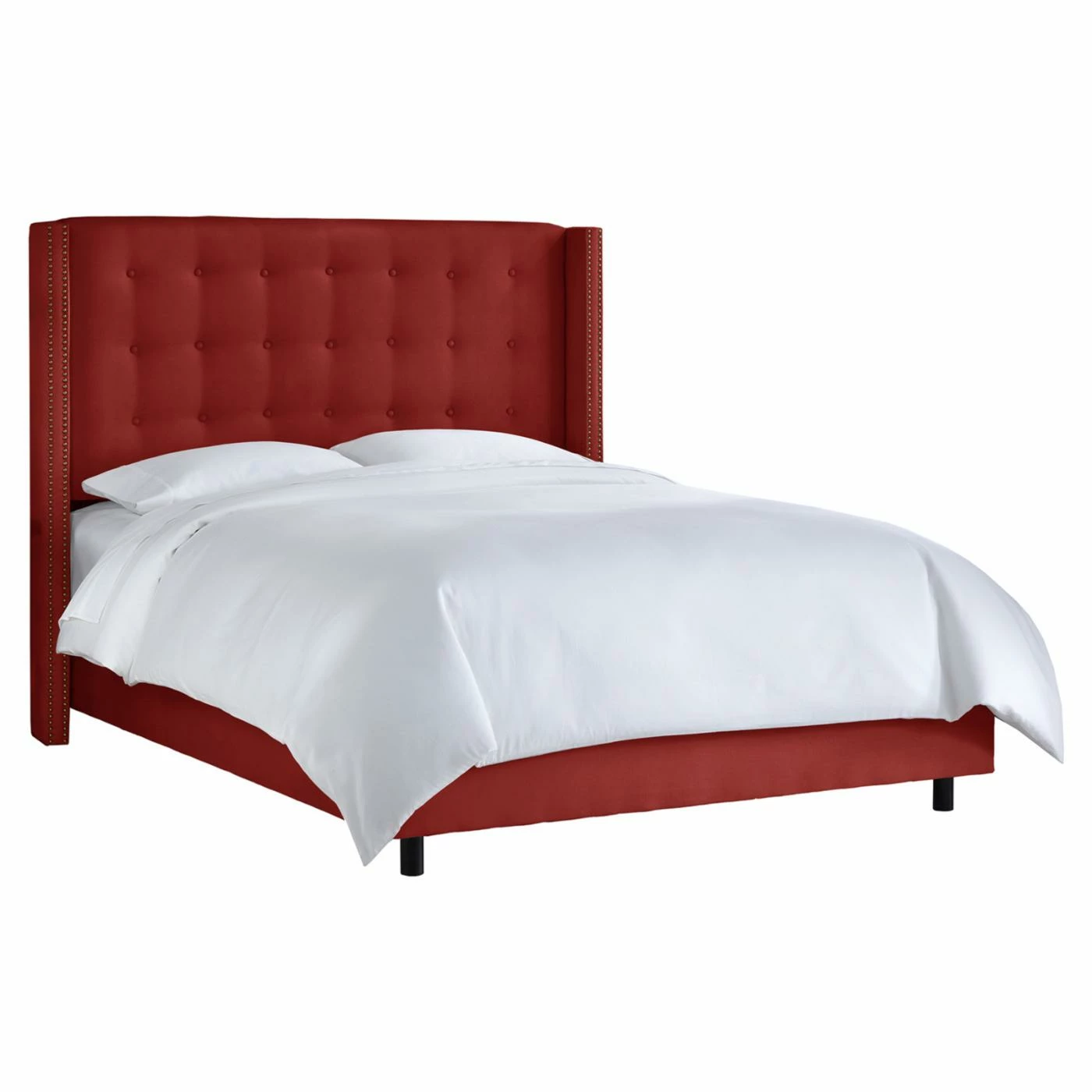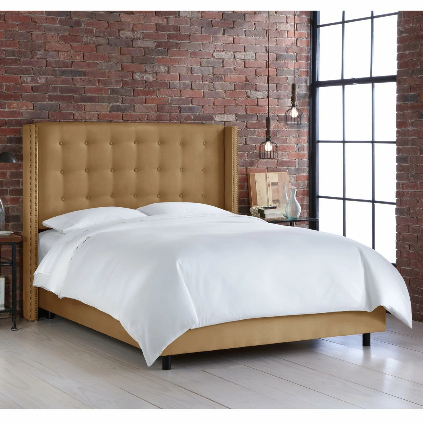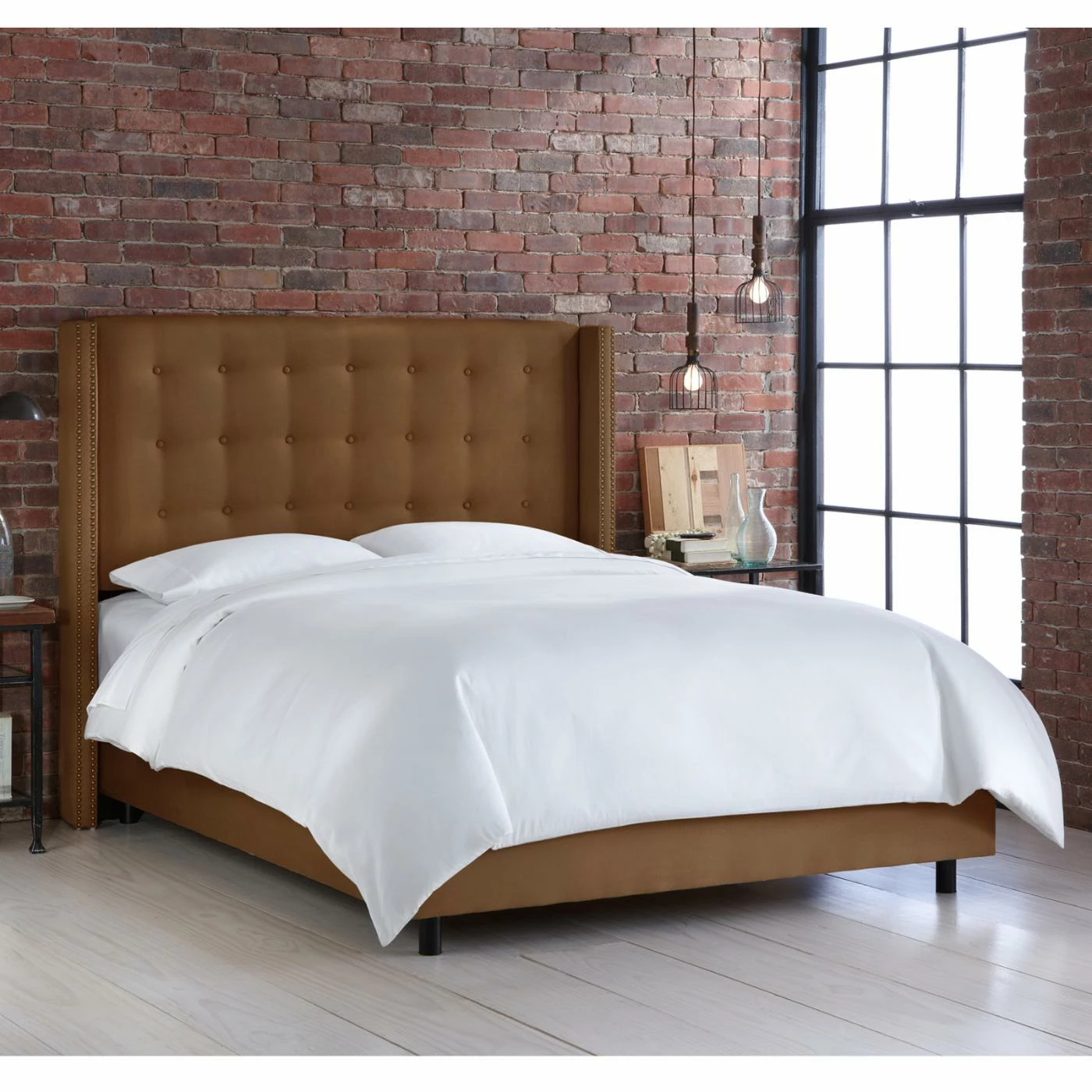 Turning in for the night can be something extraordinary with the Skyline Nail Button Wingback Premier Upholstered Bed. This luxurious design is handcrafted from solid pine with sturdy metal legs. Its headboard and side panels are upholstered in the fabric of your choice and the wingback shape of the headboard is enhanced with exquisite nailhead detailing and generous polyester foam padding with beautifully applied button tufting. The Skyline Nail Button Wingback Premier Upholstered Panel Bed comes in a wide array of sizes to match your needs and includes all necessary hardware for quick and easy assembly.