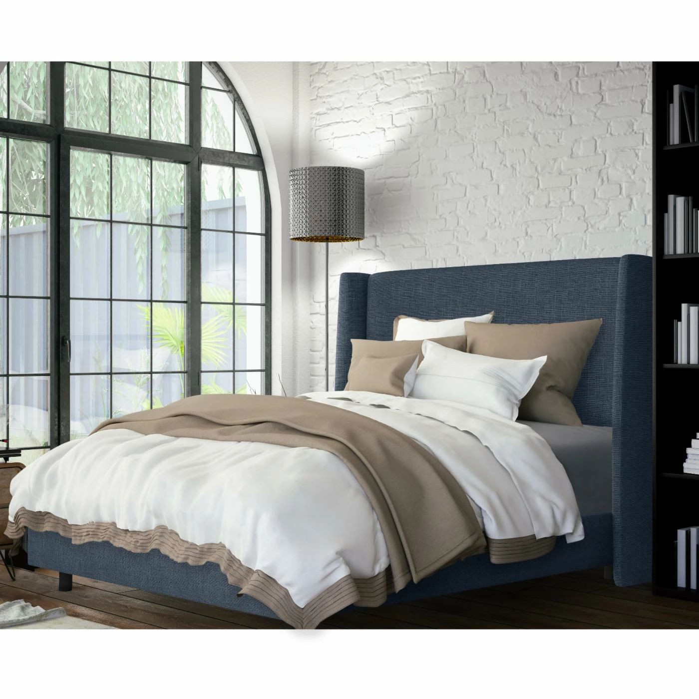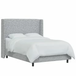 Energize your space with the Skyline Zuma Full Wingback Bed, a distinguished option that’s peaceful and contemporary. Snuggle up to the upholstered headboard as you get ready for dreamland. The clean, simple design helps your bedroom feel crisp and uncluttered. Spot clean the linen/rayon fabric as needed. A mattress and box springs are not included.