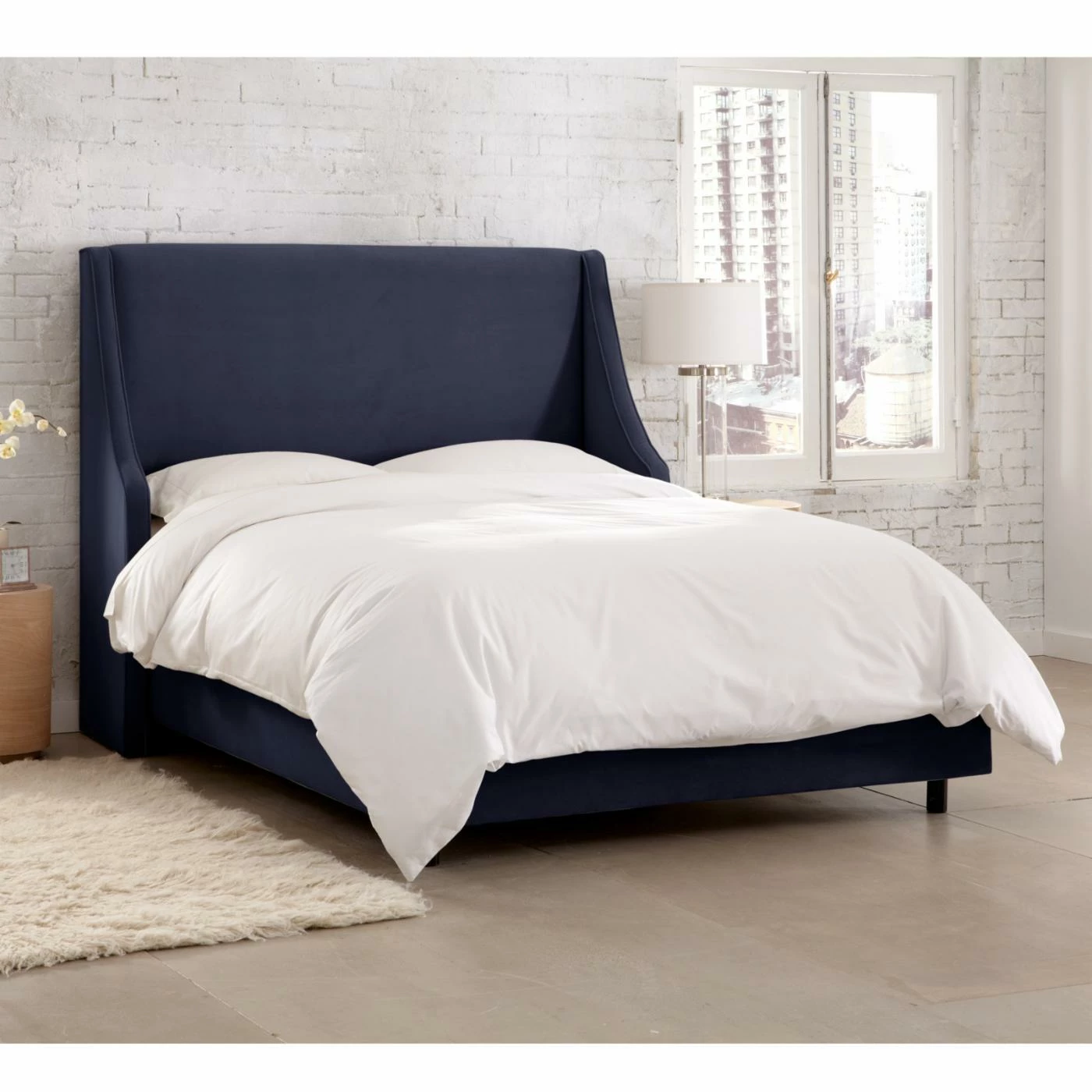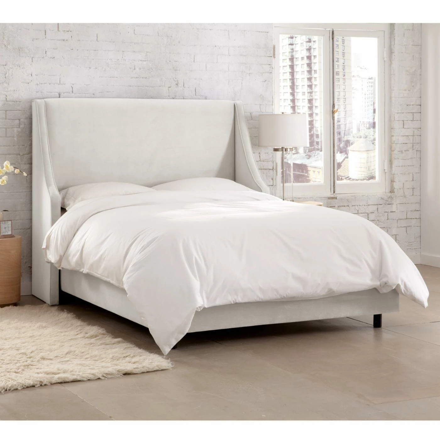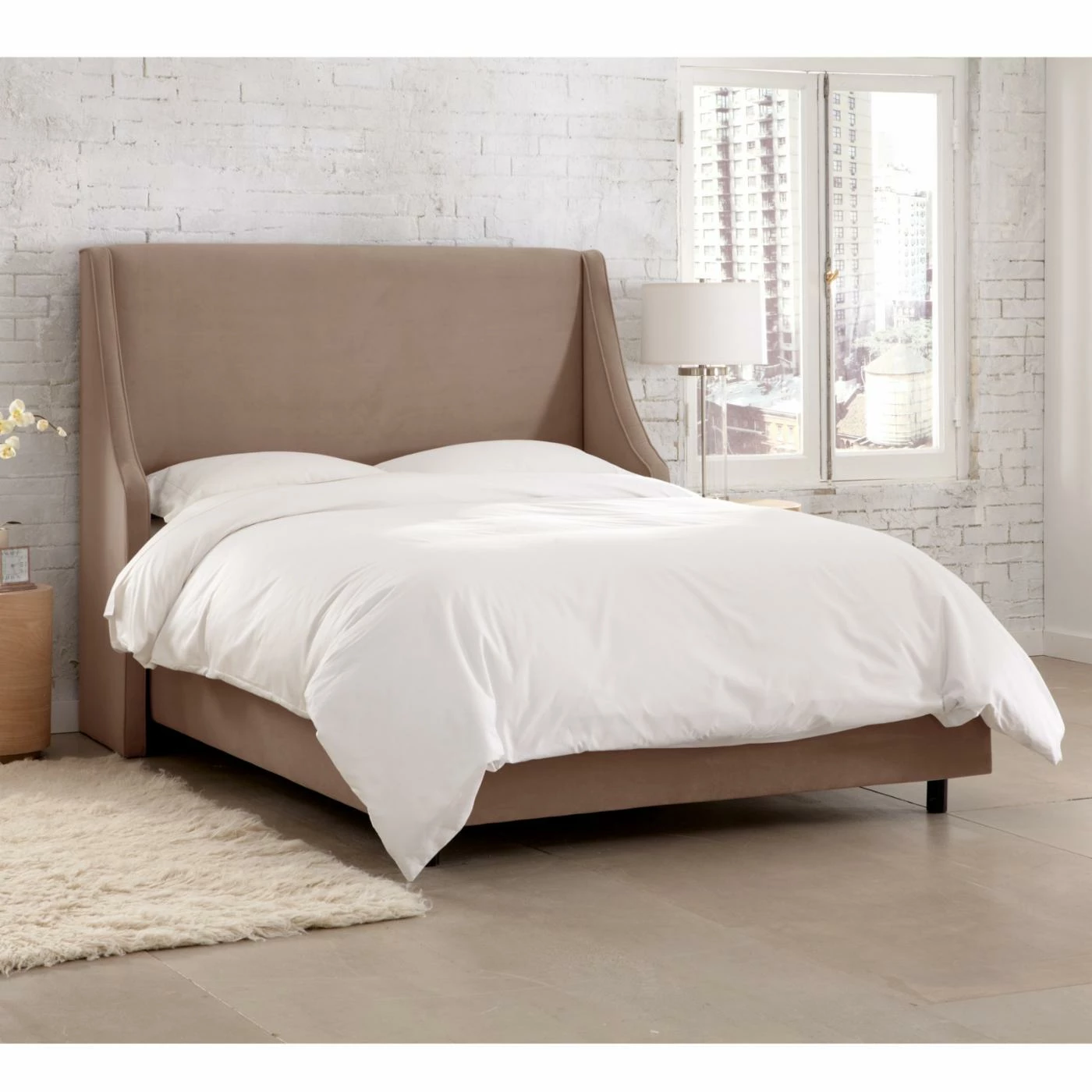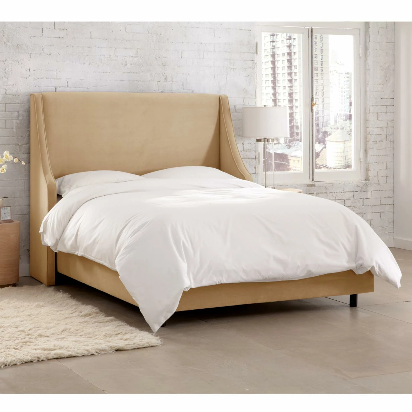 Wrap yourself in luxury with the Swoop Arm Wingback Velvet Upholstered Bed. This bed features a modified wingback headboard that features plush foam padding and ultra soft velvet fabric. It comes in a variety of velvet color options. The low profile footboard and rails add a contemporary look. Available in a variety of size options.