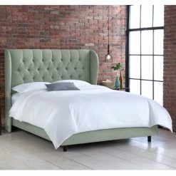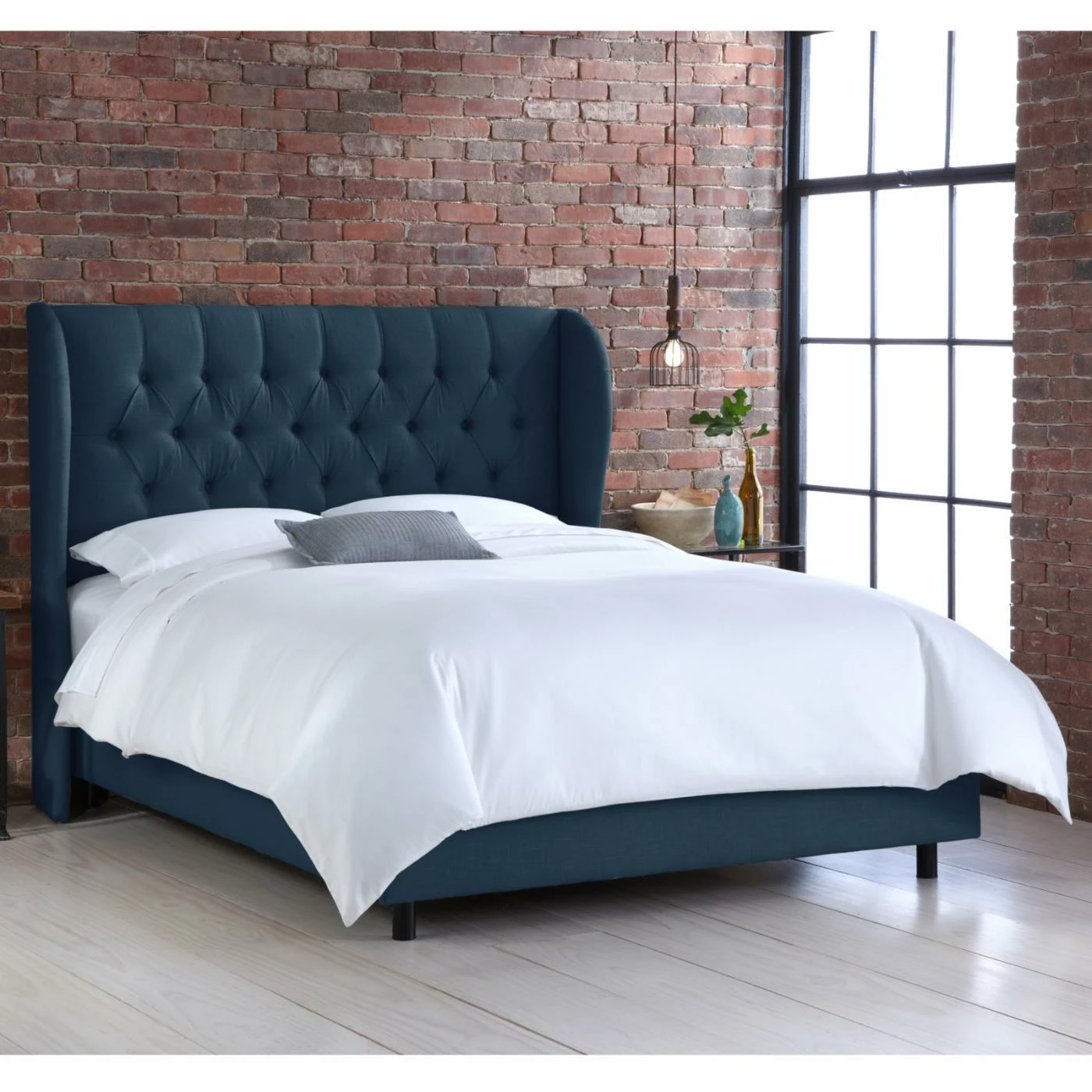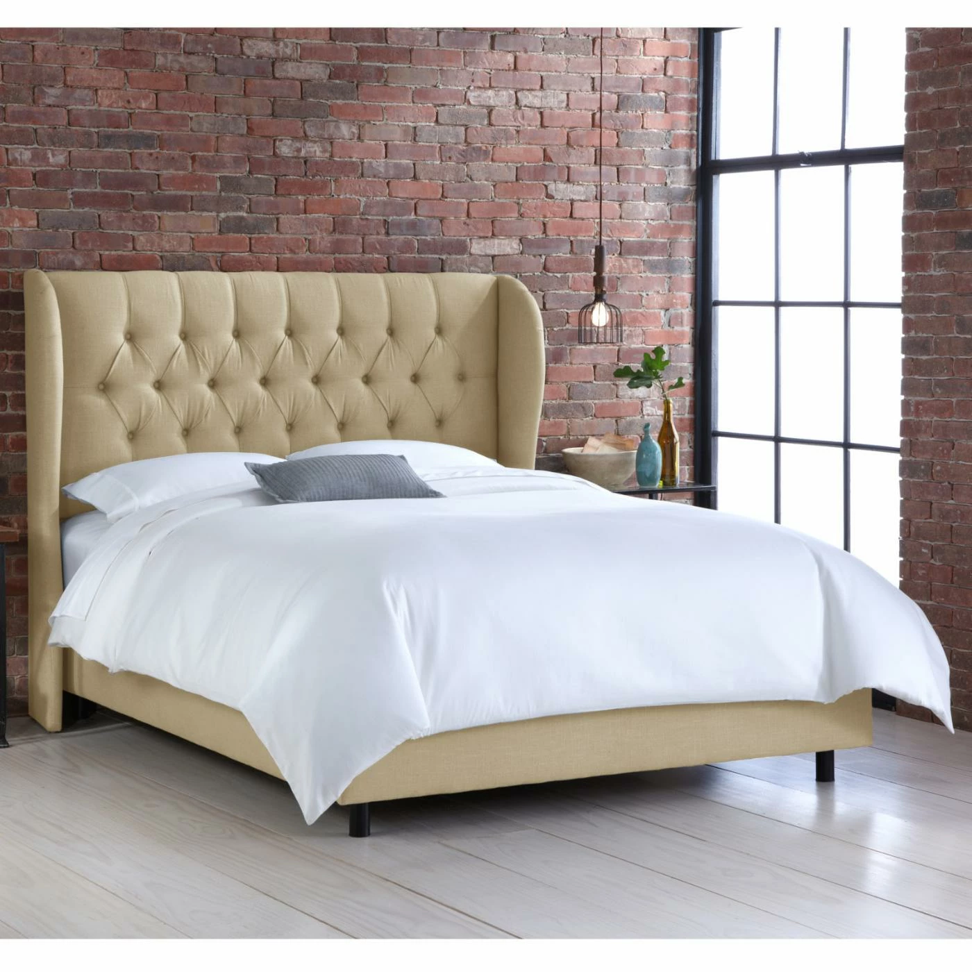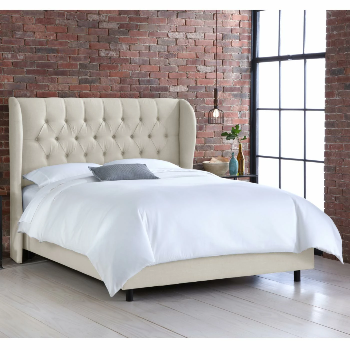 Five-star luxury comes home with the Tufted Wingback Linen Upholstered Bed. This bed features a graceful wingback headboard design with plush foam padding and beautiful linen blend upholstery. It comes in several color options and diamond tufting lends a tailored look. The low profile footboard and rails create a contemporary profile. This bed is available in select size options.