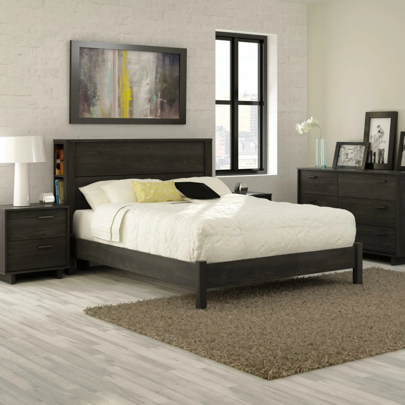If you’ve ever tried to establish a sleek, modern bedroom but you keep junking it up with bedside clutter like tissue boxes, lotion bottles and your collection of unread magazines, the Fynn Full Storage Headboard Platform Bed – Gray Oak has a plan that makes your room look fabulous and you look like you’ve got it at least partially together. This sturdy, full-sized platform incorporates simple, clean lines into a body that’s formed from non-toxic, eco-friendly particle board with a laminate exterior that has the look of oak with a deep gray finish. The optional storage headboard has a strong visual impact, while offering small storage cubbies on the side that give you a place for your must-have items while keeping them easily out of sight. The headboard also sports the single, horizontal groove that is a defining feature of all the pieces in Fynn’s Gray Oak line.