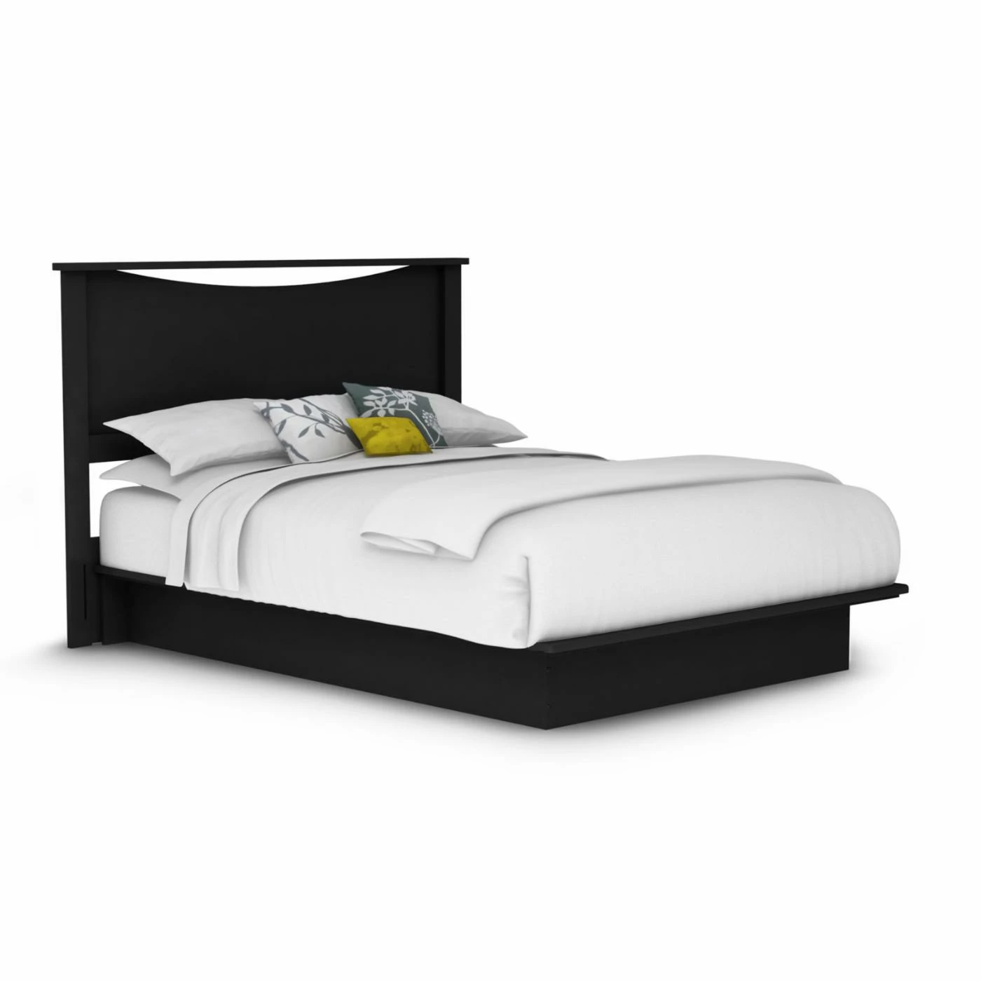 Create a blissful bedroom with the South Shore Step One Platform Bed with Headboard – Queen. Skip the box springs and enjoy the low-profile ease of this platform bed. It comes with a moderate-height headboard with a graceful concave curve beneath the straight top rail. This platform bed is made in Canada with sturdy laminated particleboard, an engineered wood that is environmentally preferred because it’s made with waste materials from other wood products for a lighter impact on forest resources.