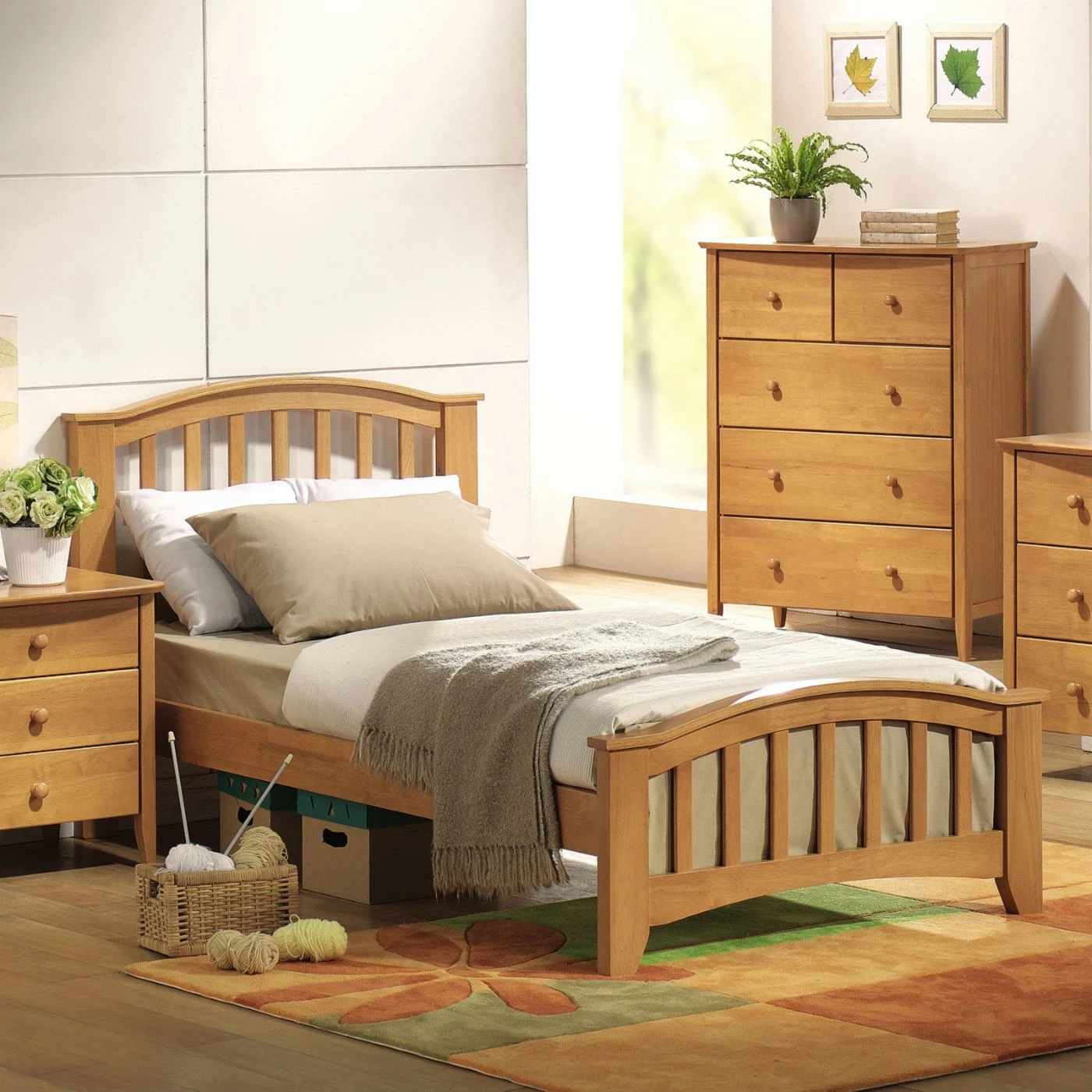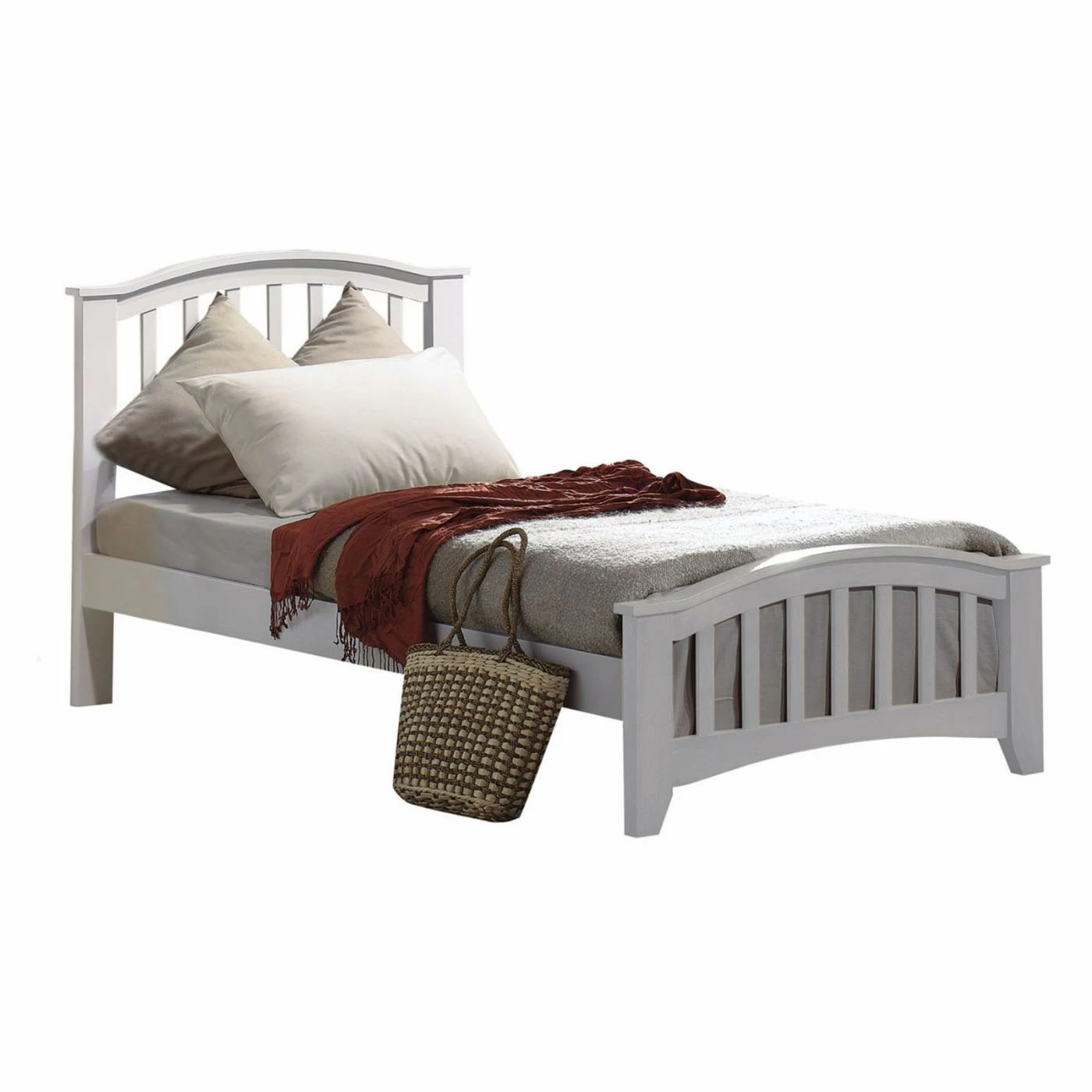 - Arched headboard and footboard with slats