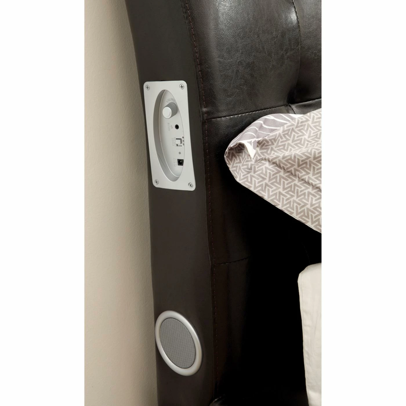 Cozy and comfortably, yet boldly stylish, this Gretza Contemporary Platform Bed with Bluetooth Speakers – Espresso will be the focus of your bedroom setup. Supported by a durable wood frame, the bed is equipped with a stunning padded headboard that features detailed tufting. Additionally, it has Bluetooth speakers so you can listen to music, books, programs, and anything else to help you unwind. It’s also finished in a rich espresso hue.