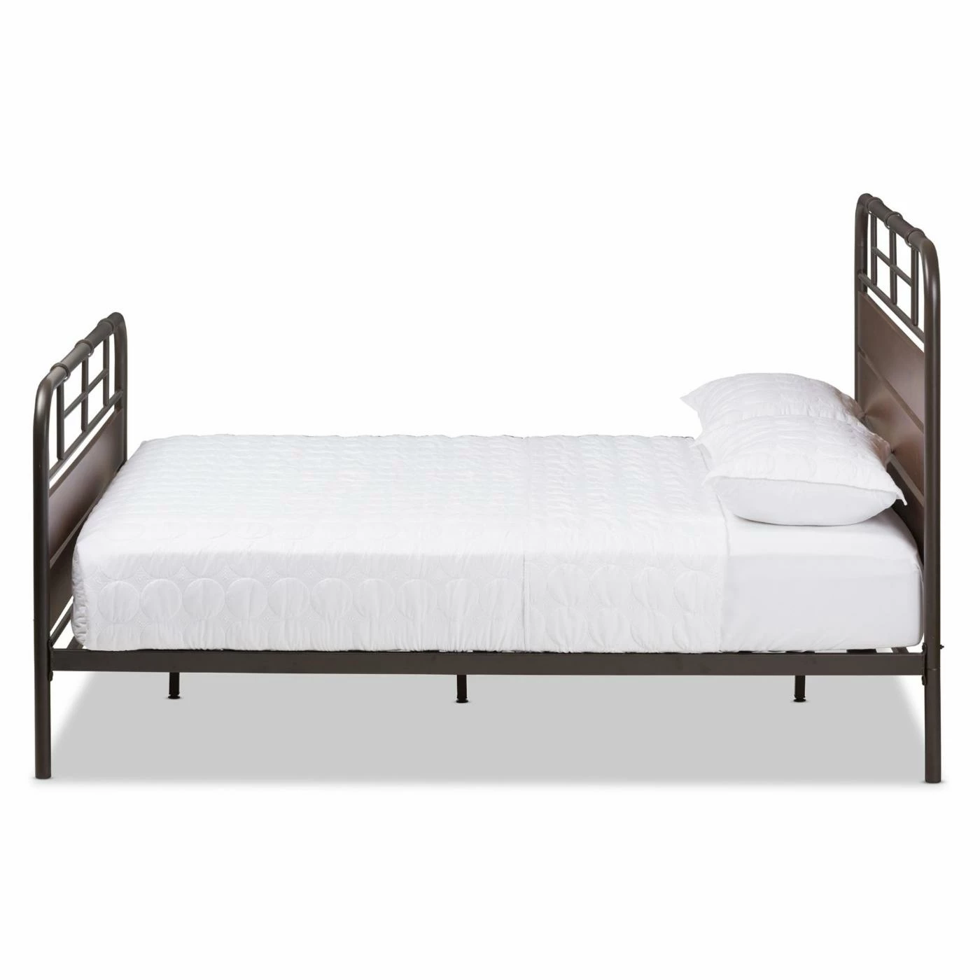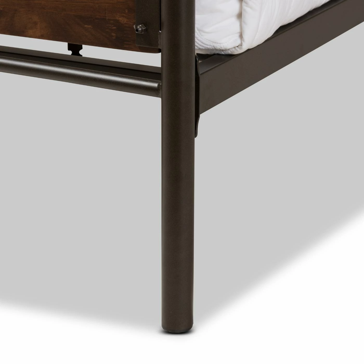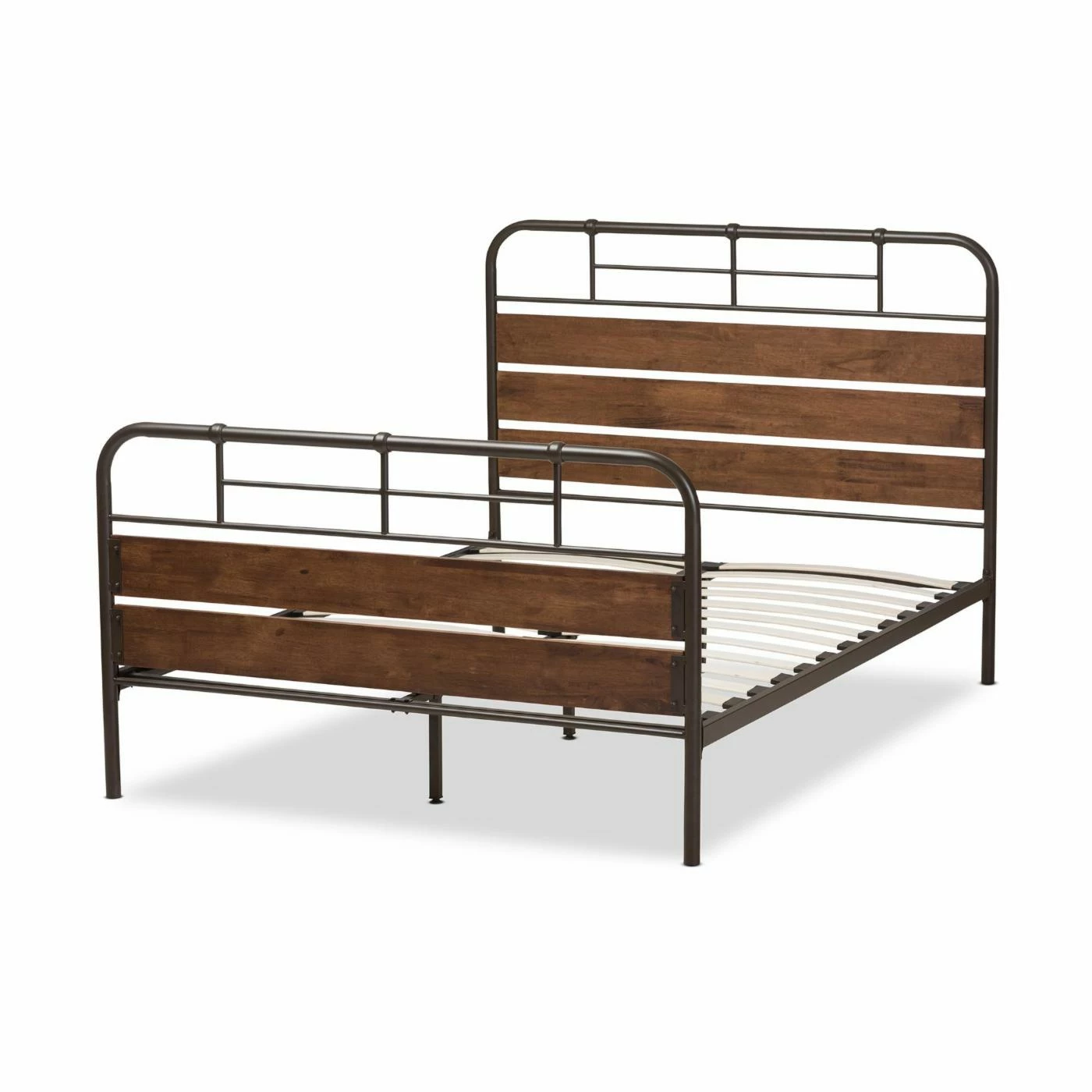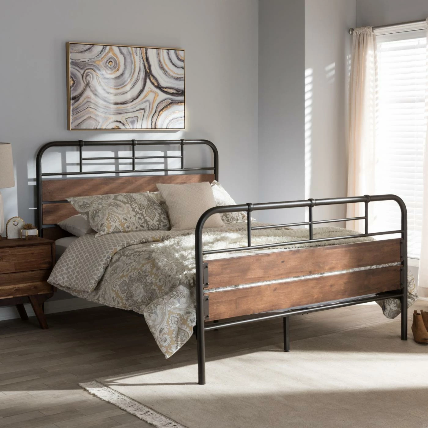 Complete your new industrial bedroom overhaul with the HN Home Stratford Modern Farmhouse Wood Platform Bed. This magnificent platform bed has a modern and rustic look comprised of tubed steel and sawn timbers. The frame is accented with crossbars on the headboard and footboard as well as a stippled black finish. Horizontal wood planks outfit the piece, finished in matching dark brown tone. No box spring required. Choose from available size options.