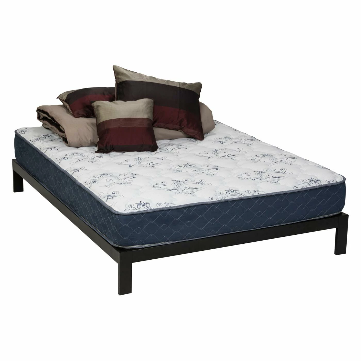 Perfect for any bedroom, the Wolf Mateo Platform Bed Set is a complete set that includes a foam-encased 336-coil innerspring mattress and sleek black steel platform bed. The mattress offers medium-firm support and contains a third posture pad for even more support. It features a stretch knit quilt fabric cover. The black steel platform base doesn’t require a foundation or box spring. This platform bed set is available in size options.
